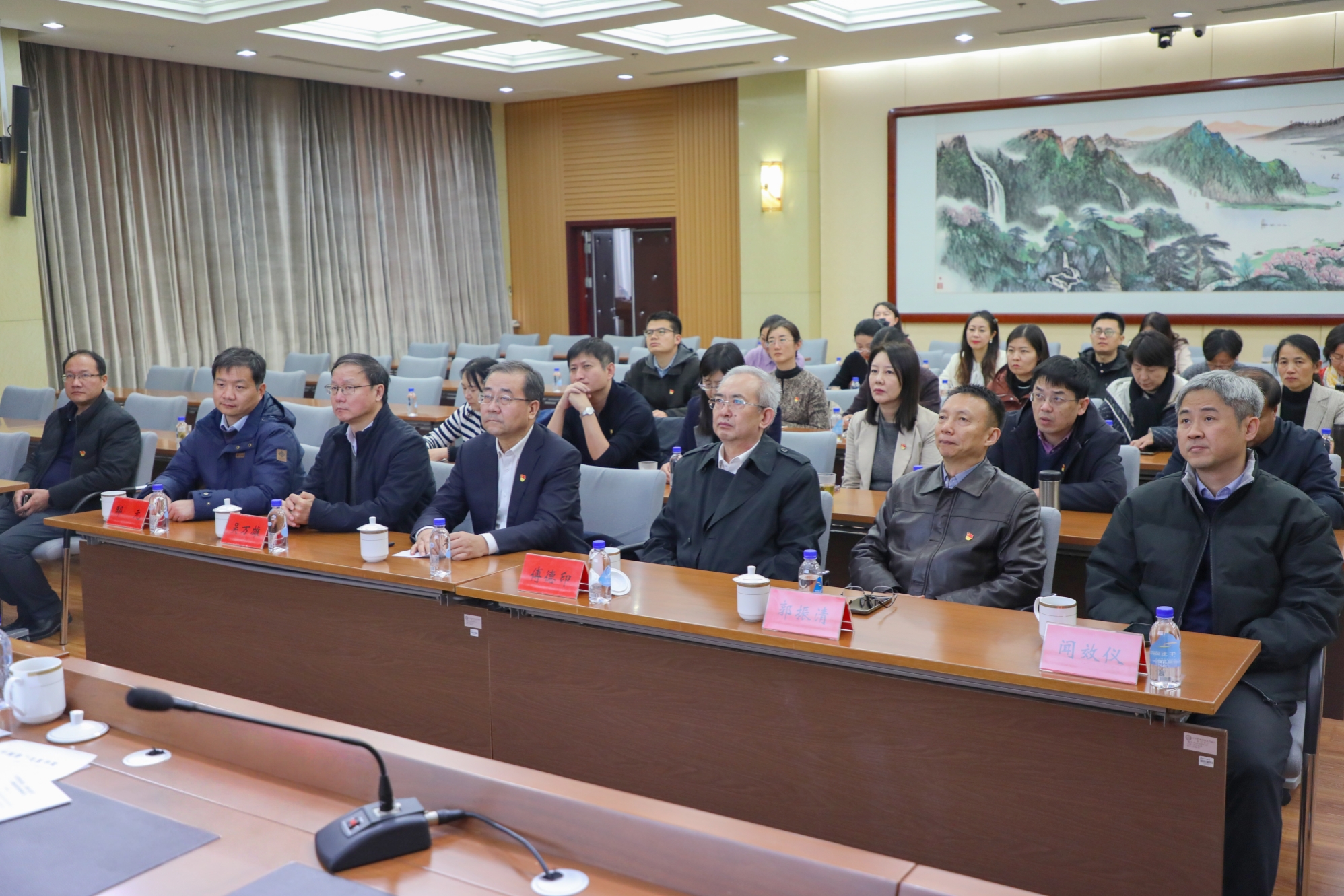 11月26日下午,为全面学习宣传贯彻党的二十届四中全会精神,深入学习习近平总书记关于注重家庭家教家风建设的重要论述,巩固拓展深入贯彻中央八项规定精神学习教育成果,教育引导学校党员干部树立良好家教家风,学校党委理论学习中心组走进中央档案馆开展现场教学活动。邀请中央档案馆档案资源开发处付世魁专题授课。中央档案馆办公室二级巡视员解晓峰、工会主席陈嘉,学校领导刘向兵、傅德印、吴万雄、郭振清、邸元、闻效仪,党委常委戴筱筱、李东出席活动,党总支书记、党口职能部门负责人一行30余人参加活动。