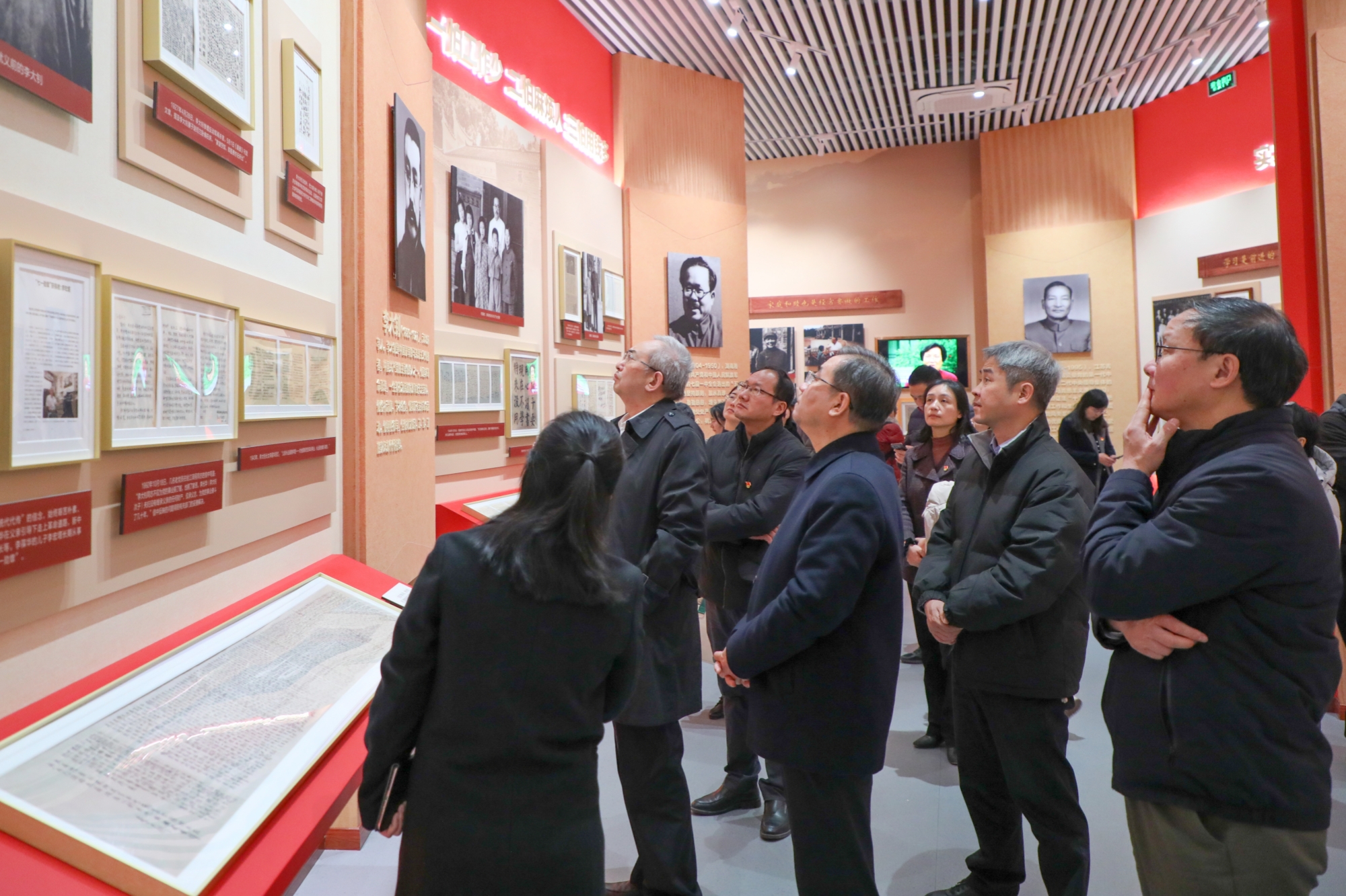 现场教学环节,全体人员认真聆听讲解,仔细观看档案资料。“老一辈革命家的家教家风”主题档案文献展以毛泽东、周恩来、刘少奇、朱德、邓小平、陈云等30位老一辈革命家感人的家教家风故事为主线,通过百余件家书家信、诗词著作、工作记录等珍贵档案资料,生动展现了老一辈革命家以学兴家、以德传家、以严治家、以俭持家、以廉守家的优良家教家风,彰显了他们严于律己、清正廉洁、甘于奉献的高尚品格。