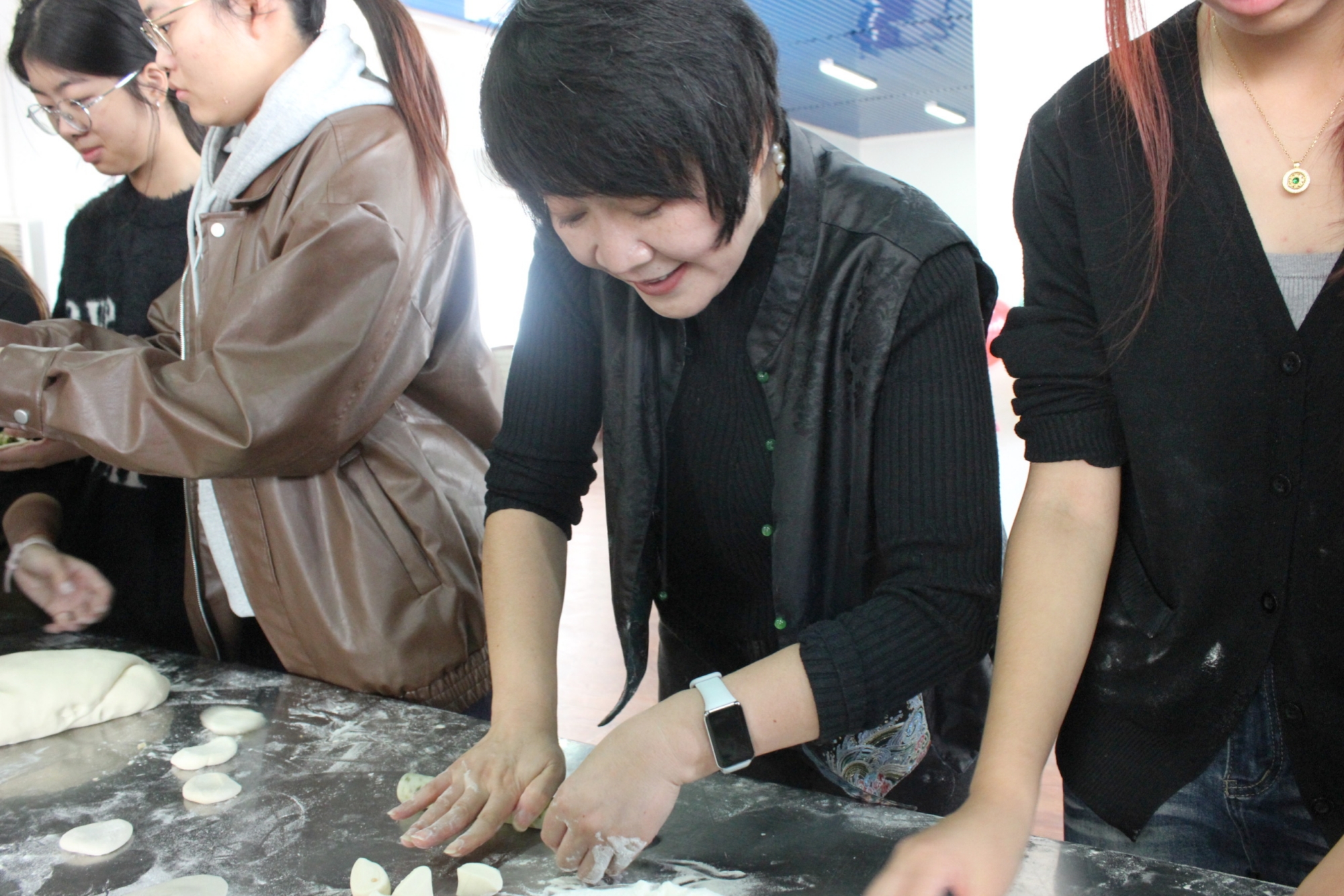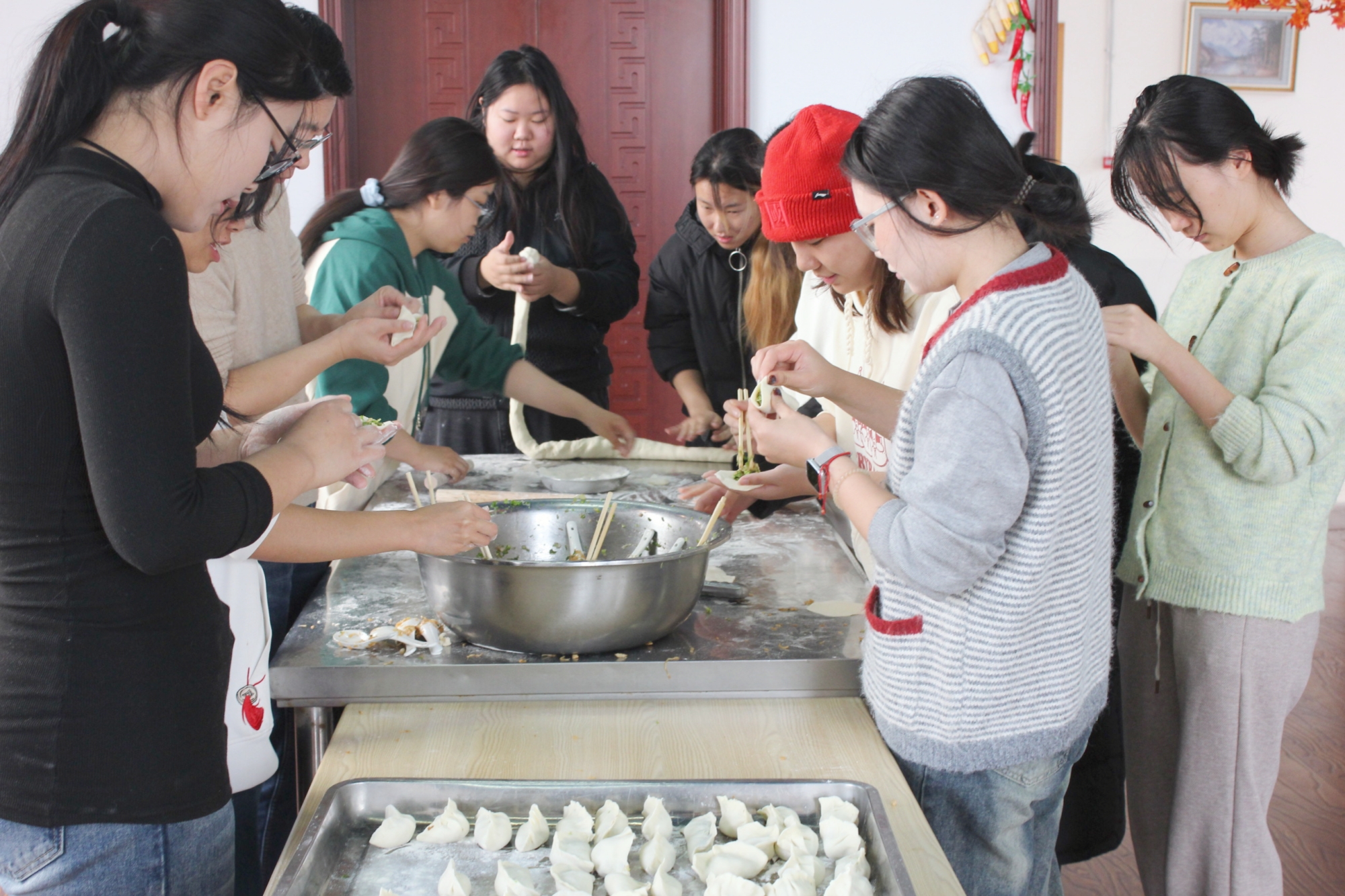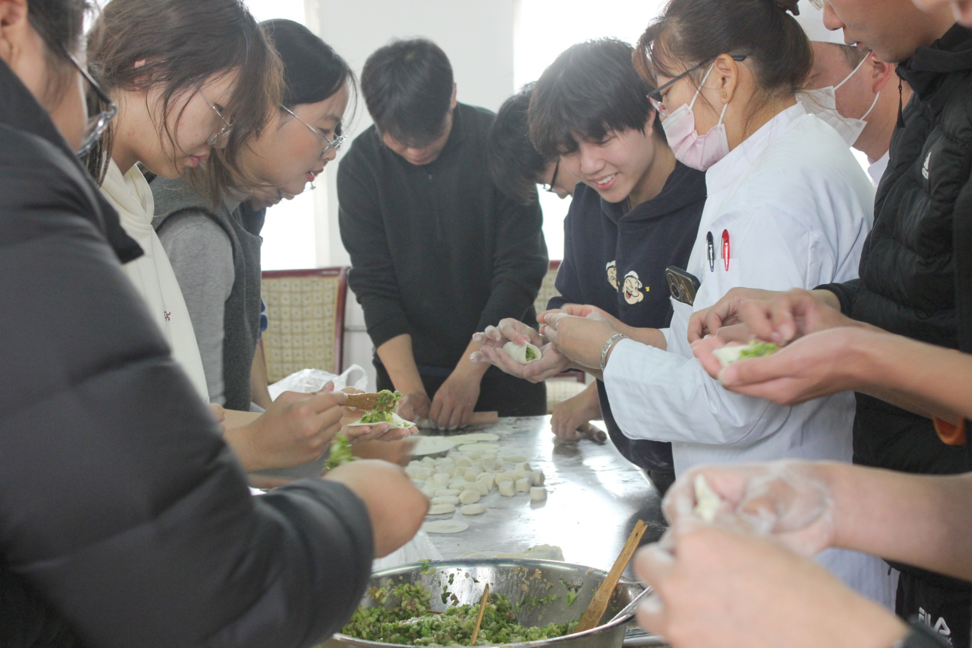 11月30日上午,在涿州校区教工餐厅,师生们通力合作,进行食材清洗、备馅、和面等准备工作,将采收的白菜、萝卜加工成包子、饺子、羹汤等美味佳肴。李珂与师生们共同品尝亲手制作的美食,共享劳动成果。他充分肯定了同学们在耕读小院管养中展现出的劳动精神,并希望劳动教育学院与后勤管理处持续深化合作,进一步加强活动的教育性设计,将其打造为既服务于劳动教育专业人才培养,又面向全校学生的劳动教育实践教学品牌。