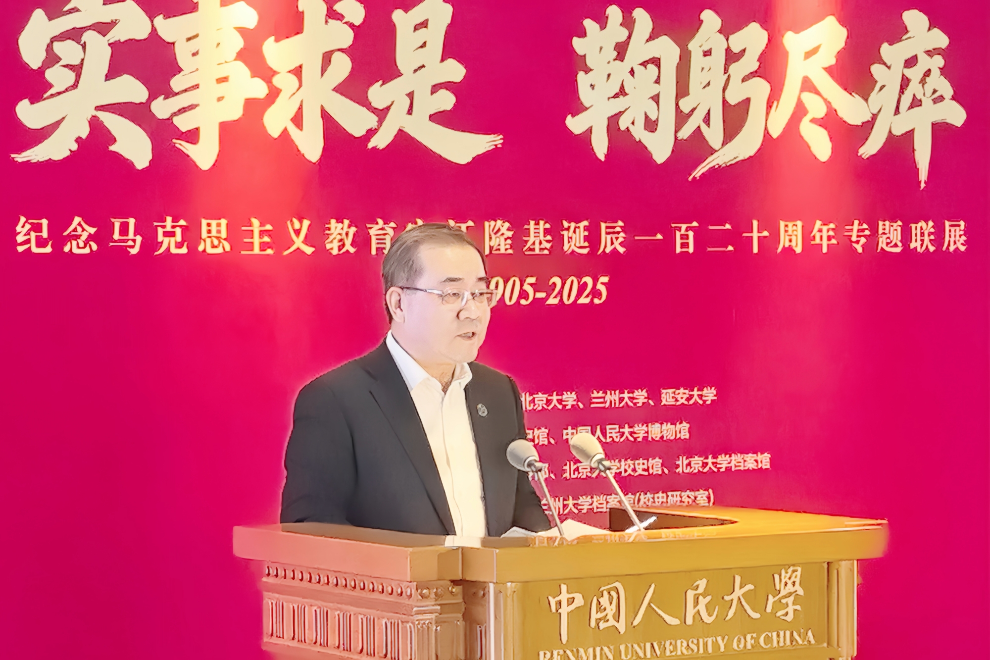 12月26日下午,由北京大学、兰州大学、中国人民大学、延安大学共同主办的“实事求是,鞠躬尽瘁——纪念马克思主义教育家江隆基诞辰120周年”专题联展开幕式在中国人民大学博物馆举行。中国人民大学党委副书记郑水泉,江隆基长女、中国红十字会原党组书记、常务副会长江亦曼,江隆基次女江钊,江隆基三女江燕妮,我校党委书记刘向兵,延安大学副校长王延峰,北京大学档案馆、校史馆馆长余浚,延安大学档案馆、校史馆馆长王蕊蕊,兰州大学档案馆副馆长陈艳出席活动。开幕式由中国人民大学校史馆、博物馆馆长李贞实主持。