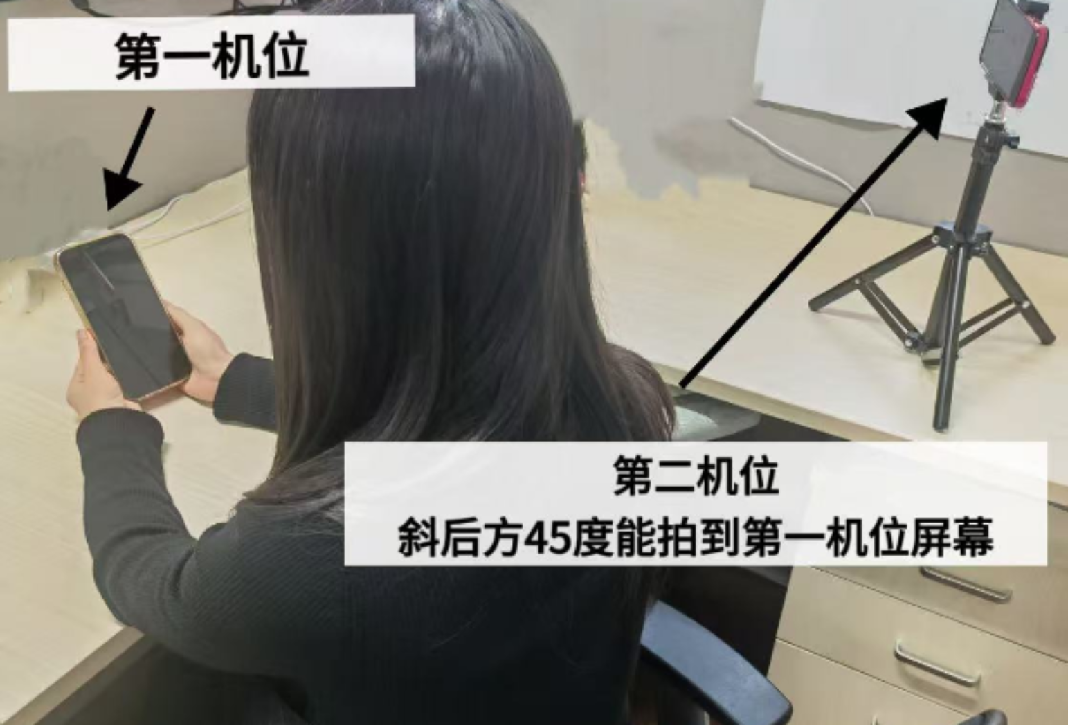 2.考试开始前,考生应当根据监考教师的指令,手持第二机位摄像头,展示本人应试环境,考试全程考生不能佩戴口罩,不得改变应试环境。