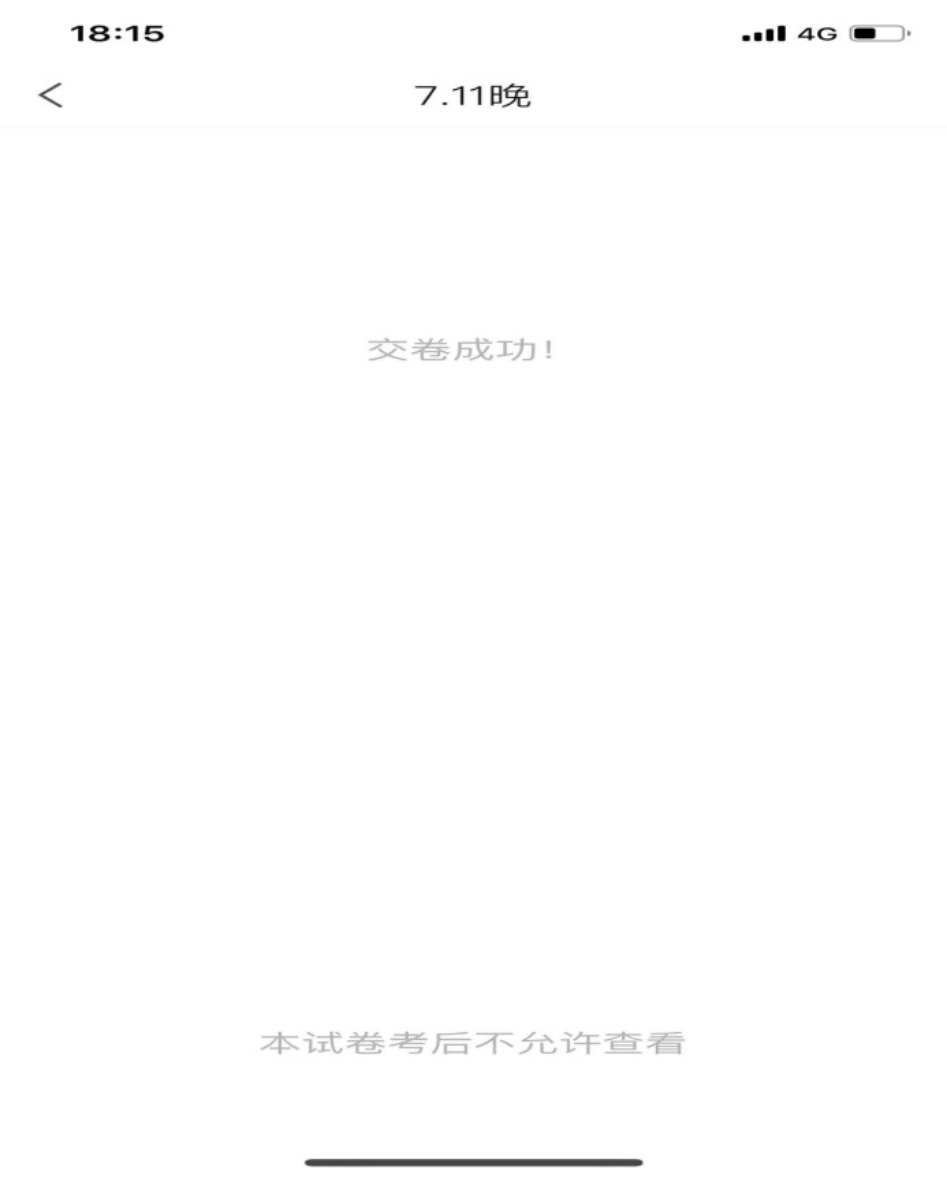 8.在线考试结束后由系统自动收卷,请考生注意作答时间,主观题尽量在考试结束前五分钟上传,以免系统自动收卷导致未保存作答题目(尤其是主观题)无法提交或上传失败。下图为试卷提交成功后页面状态。