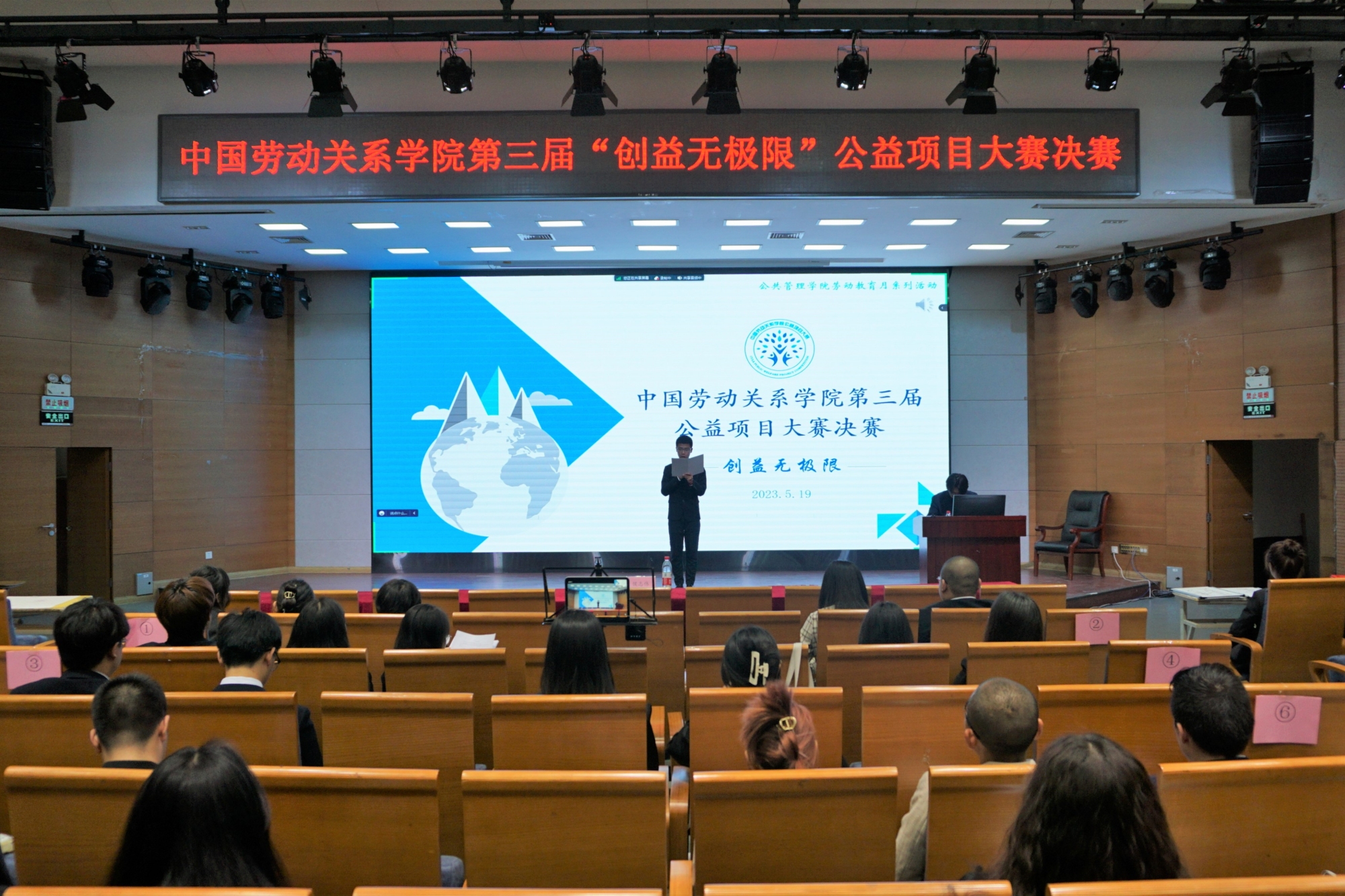 5月19日,由北京中国劳动关系学院教育基金会和公共管理学院主办、社会组织与公益创新研究中心承办的“劳动教育月”系列活动暨中国劳动关系学院第三届“创益无极限”公益项目大赛决赛在涿州校区举行。来自全校10个二级学院的162支学生队伍参加初赛,经过组委会专家文本评审、初赛答辩,最终来自公共管理学院、社会工作学院、文化传播学院、劳动关系与人力资源学院、法学院和劳动教育学院的12支学生团队进入决赛。