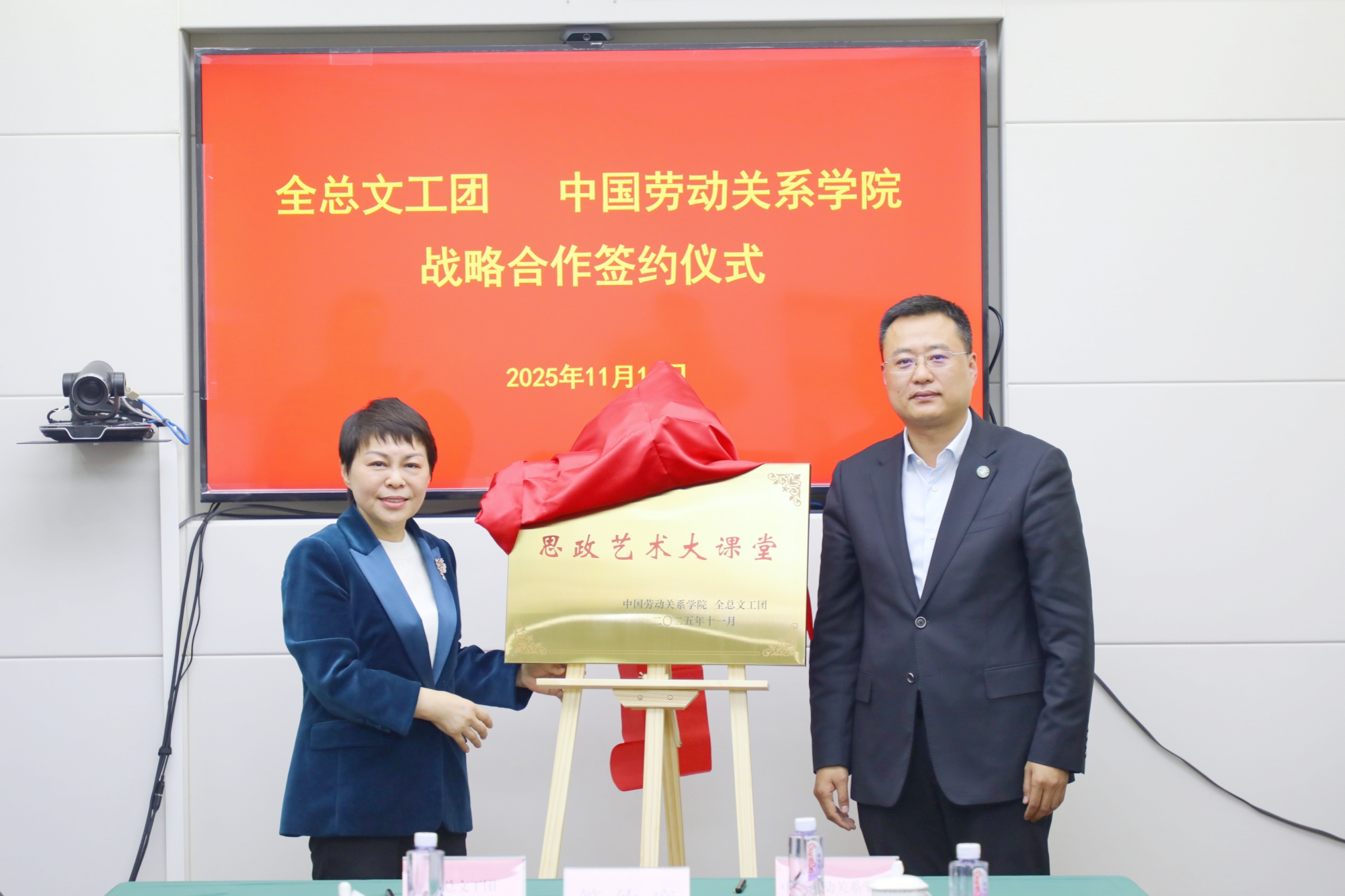 仪式现场,吴万雄与王晓旌共同签署了战略合作框架协议,双方代表还共同签署了“惠工院线”合作协议。李珂与王晓旌共同为中国劳动关系学院“思政艺术大课堂”揭牌。