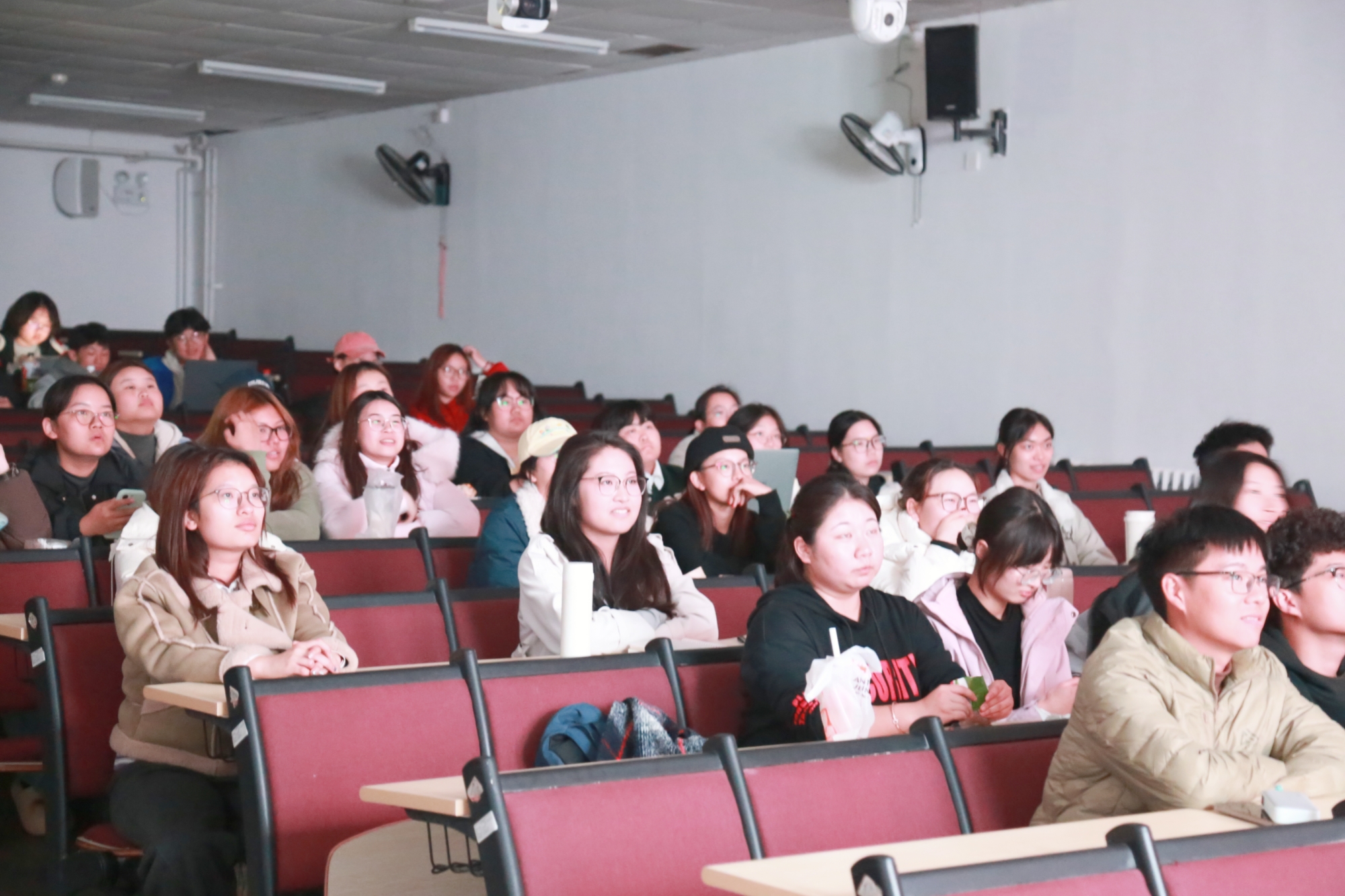 此次展映活动精选了5部获奖影片,分别是《假期》(最佳剪辑奖)、《龟壳》(最佳摄影奖)、《碰海》(最佳编剧奖)、《明月夜》(最佳导演奖)以及《大佬来上堂》(最佳剧情片)。这些作品题材多元、风格鲜明,敏锐捕捉了社会家庭关系的微妙变化,既有对个体成长历程的独特诠释,也融入了对时代命题的深刻思考,充分彰显了当代大学生富有创新力的艺术表达和深厚的人文底蕴。展映过程中,同学们全神贯注,在光影交错中共同感受创作的魅力,并结合影片分享了自己的感悟。