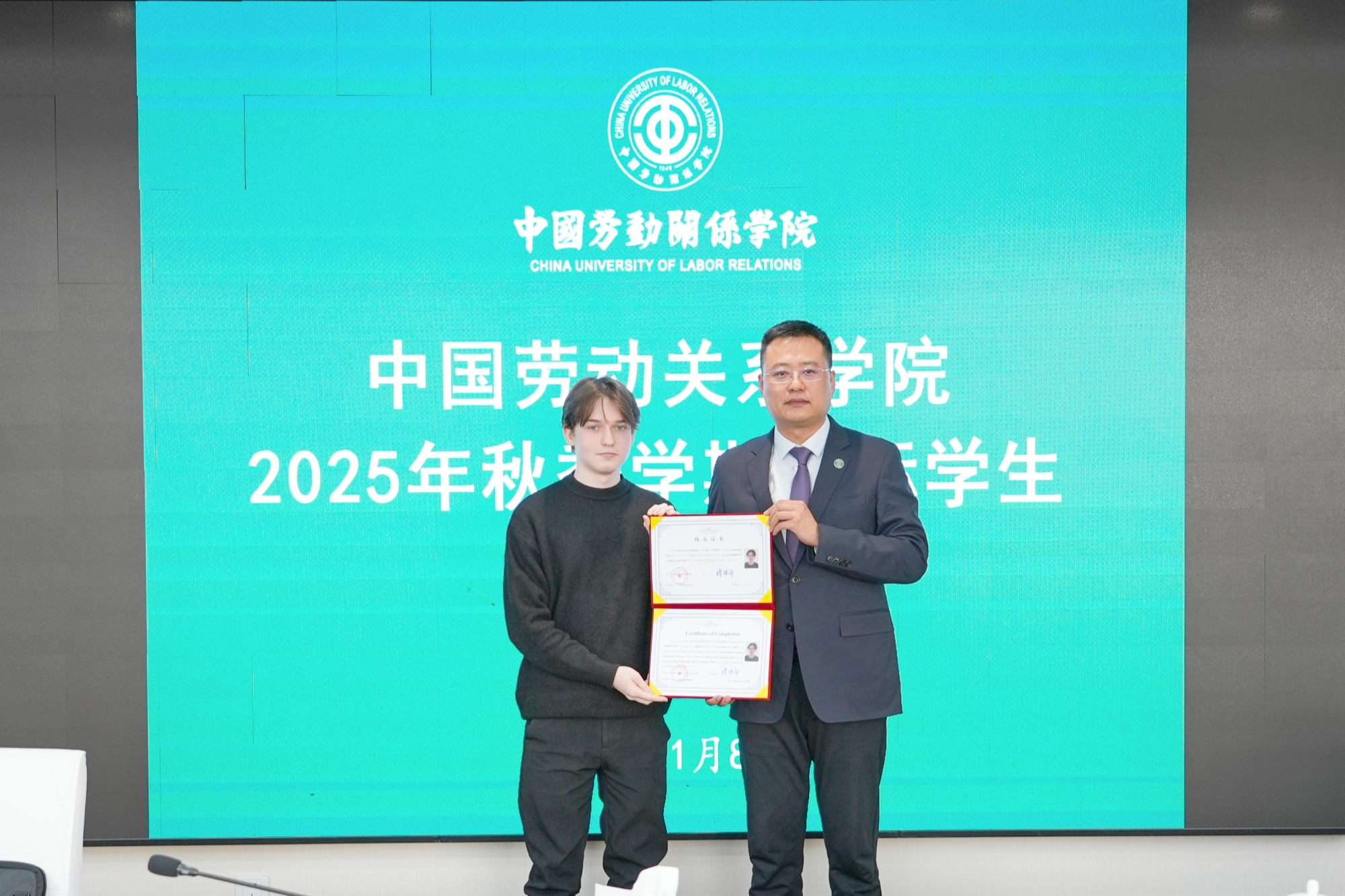 Faculty and student representatives from the School of Culture and Communication and the School of Labor Education delivered speeches respectively, extending sincere wishes and earnest expectations to the international student. Vladislav reviewed his study experience at CULR, expressed sincere gratitude to the university, teachers and classmates, and stated that he would continue to work hard to contribute to cultural exchanges between China and other countries.