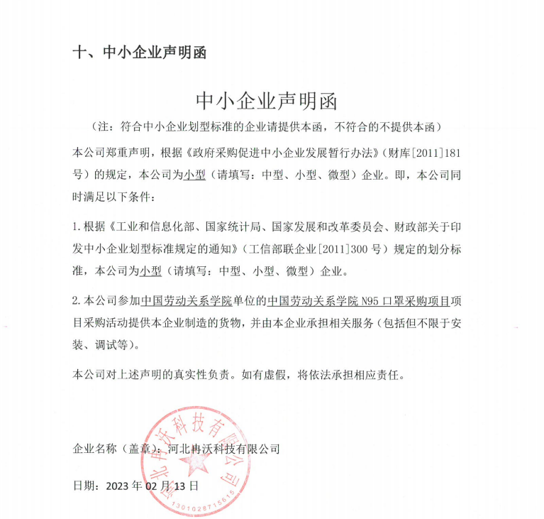 | 1 | 河北冉沃科技有限公司 | 中国劳动关系学院N95口罩采购项目 | 响应谈判文件 | 响应谈判文件 | 响应谈判文件 | 响应谈判文件 |
