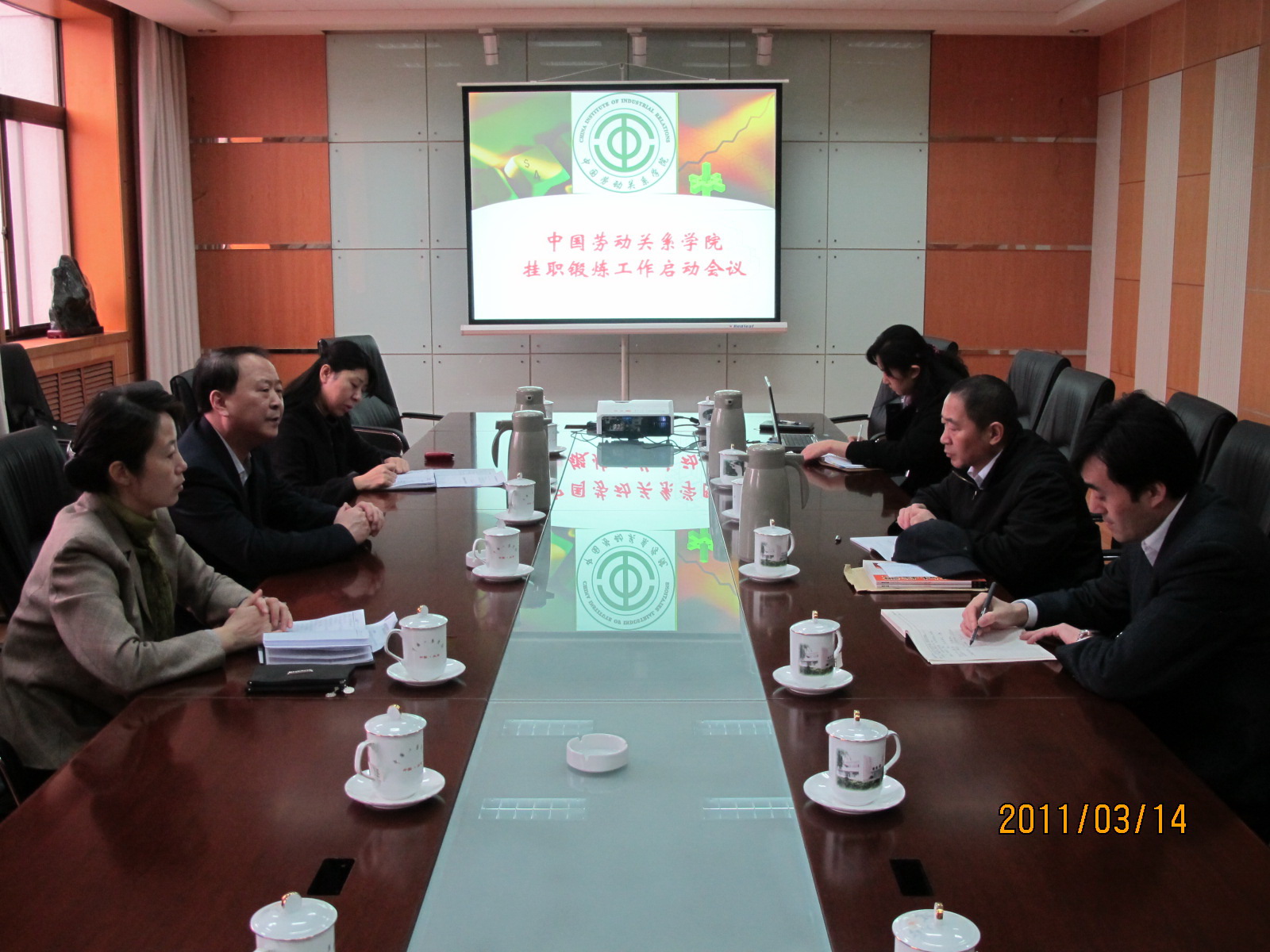 2011年3月14日,中国劳动关系学院教师挂职锻炼工作启动会议在校本部召开。学院院长李德齐出席会议并讲话,干部人事处处长吴群英、挂职锻炼教师及相关工作人员参加了会议。干部人事处副处长马亚主持会议。