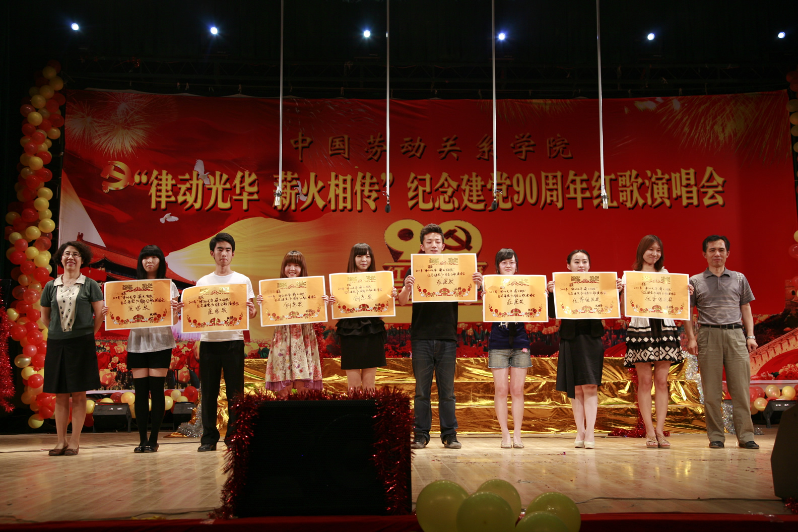经过一番激烈角逐,文化传播学院和高职学院凭借出色的演唱功力荣获演唱奖;工会学院和公共管理系以鲜明的特色获得创意奖;法学系和经济管理系以饱满的精神、充满激情的演唱荣获表演奖;安全工程系和劳动关系系以良好的现场互动和得力的组织获得优秀组织奖。副书记张晓波和副院长李华东为获奖团队颁发了奖状。
