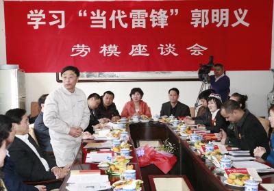3月7日上午,感动中国2010年度人物、全国“五一劳动奖章”获得者、全国无偿献血奉献奖获得者、中央企业优秀共产党员、“当代雷锋”郭明义应全国总工会宣教部的邀请,来我院与劳模学员代表座谈。全国总工会副主席、书记处书记陈豪出席座谈会并讲话。