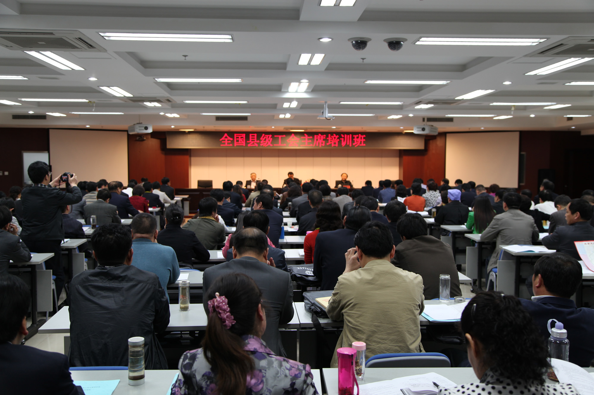 2012年4月12日至18日,全国县级工会主席培训班在中国劳动关系学院举办。来自全国29个省(市)、自治区、直辖市共153人参加了学习。全总副主席、书记处书记段敦厚,全总组织部巡视员杨军日,学院院长李德齐等领导与学员合影留念。