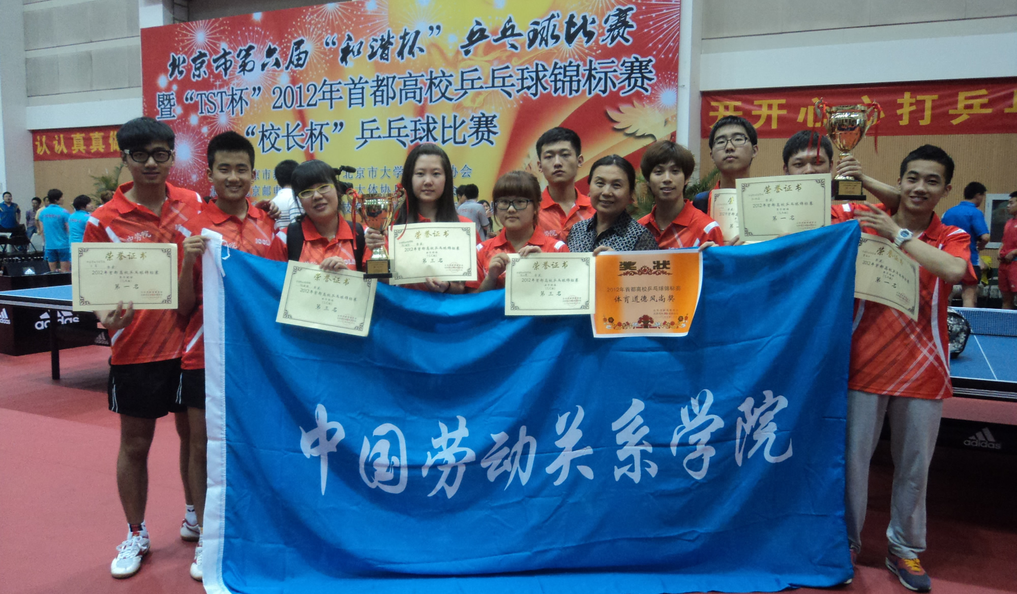 2012年5月19日至20日,我院乒乓球队在北京邮电大学举办的第六届“和谐杯”乒乓球比赛暨“TST”杯2012年首都高校乒乓球锦标赛中取得了男子团体(乙A组)第一名以及女子团体(乙C组)第三名的优异成绩。男子团体顺利升级到甲C组。我院乒乓球队还获得了“体育道德风尚奖”。