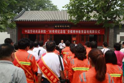 上午11时,李德齐院长、潘建新副主席、吴松元部长、汤钦飞副区长为基地揭牌。在热烈的掌声中,“中国劳动关系学院·时传祥纪念馆劳模精神教育基地”正式成立。随后,各位领导、参加仪式的东城区总工会、东城区环卫战线劳模代表以及中国劳动关系学院师生代表参观了时传祥纪念馆。