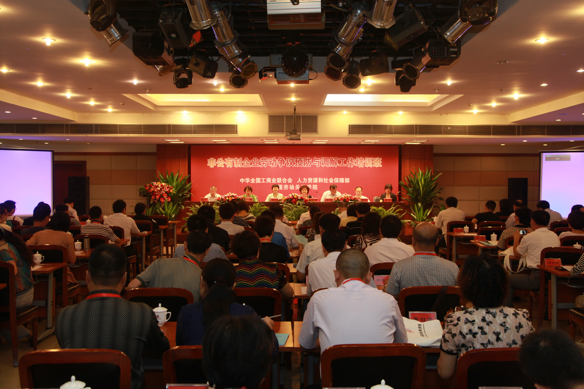 为贯彻落实《中华人民共和国劳动争议调解仲裁法》和有关企业劳动争议协商调解规定的精神,加强非公有制企业劳动争议预防调解工作,中华全国工商业联合会、人力资源和社会保障部和中华全国总工会于2012年8月共同举办“非公有制企业劳动争议与预防调解工作培训班”。培训班由中国劳动关系学院承办。来自各省、市、自治区工商联法律工作部门、商会协会、非公有制企业的负责同志共计100余人参加了这次培训。