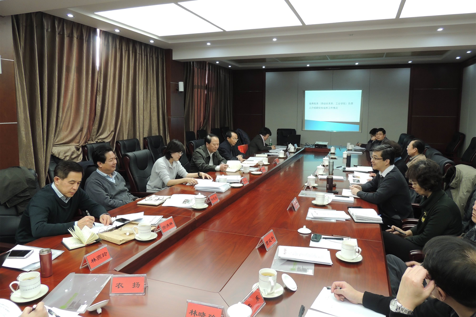 研究生处处长李桃教授首先从首届研究生招生、培养和教育管理三个方面总结了2013年研究生工作情况和2014年研究生工作要点。研究生培养系(院)负责人劳动关系主任乔健副教授和工会学院院长杨冬梅教授介绍了研究生培养工作在院系的落实情况。各职能部门负责人就研究生相关工作进行了总结交流,并表示继续加强与研究生处和培养院系的合作,共同做好研究生工作。